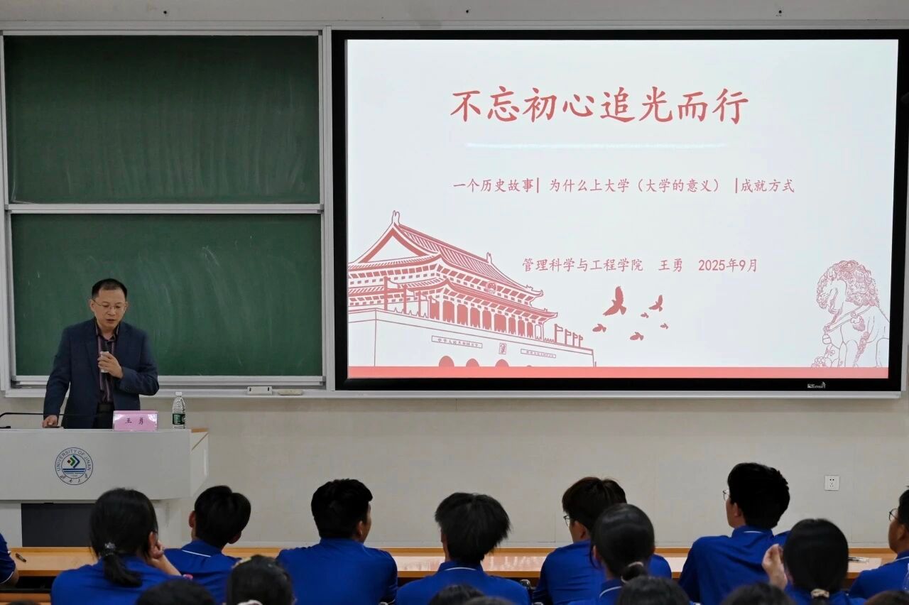 为帮助新生明确大学航向、锚定成长目标,系好人生“第一粒扣子”,9月22日,学院党委书记王勇在D3J201教室为2025级新生讲授入学第一课,2025级全体新生到场聆听。